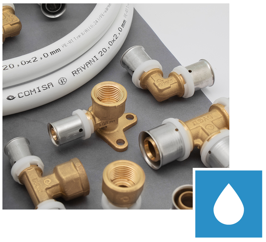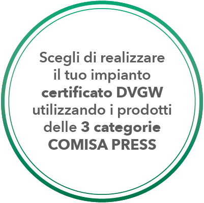 Grazie all’ampia gamma di prodotti a pressare proposti da Comisa, è possibile realizzare infinite configurazioni. Potrai così, con il medesimo sistema, soddisfare le esigenze sia di privati che industrie realizzando impianti certificati per il passaggio di acqua potabile e altri fluidi. Comisa Press System è indicato inoltre per la realizzazione di impianti di climatizzazione, anche di grandi dimensioni.